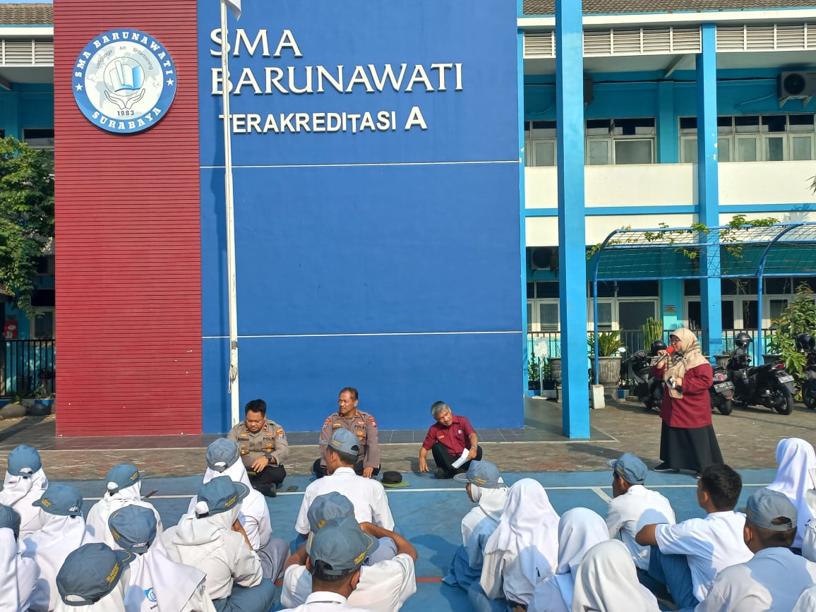 Kali ini kegiatan tersebut langsung dipimpin Waka Polres Pelabuhan Tanjung Perak, Kompol Wahyu Norman Hidayat dengan mengunjungi SMA Barunawati Jalan Perak Barat 173 Surabaya.