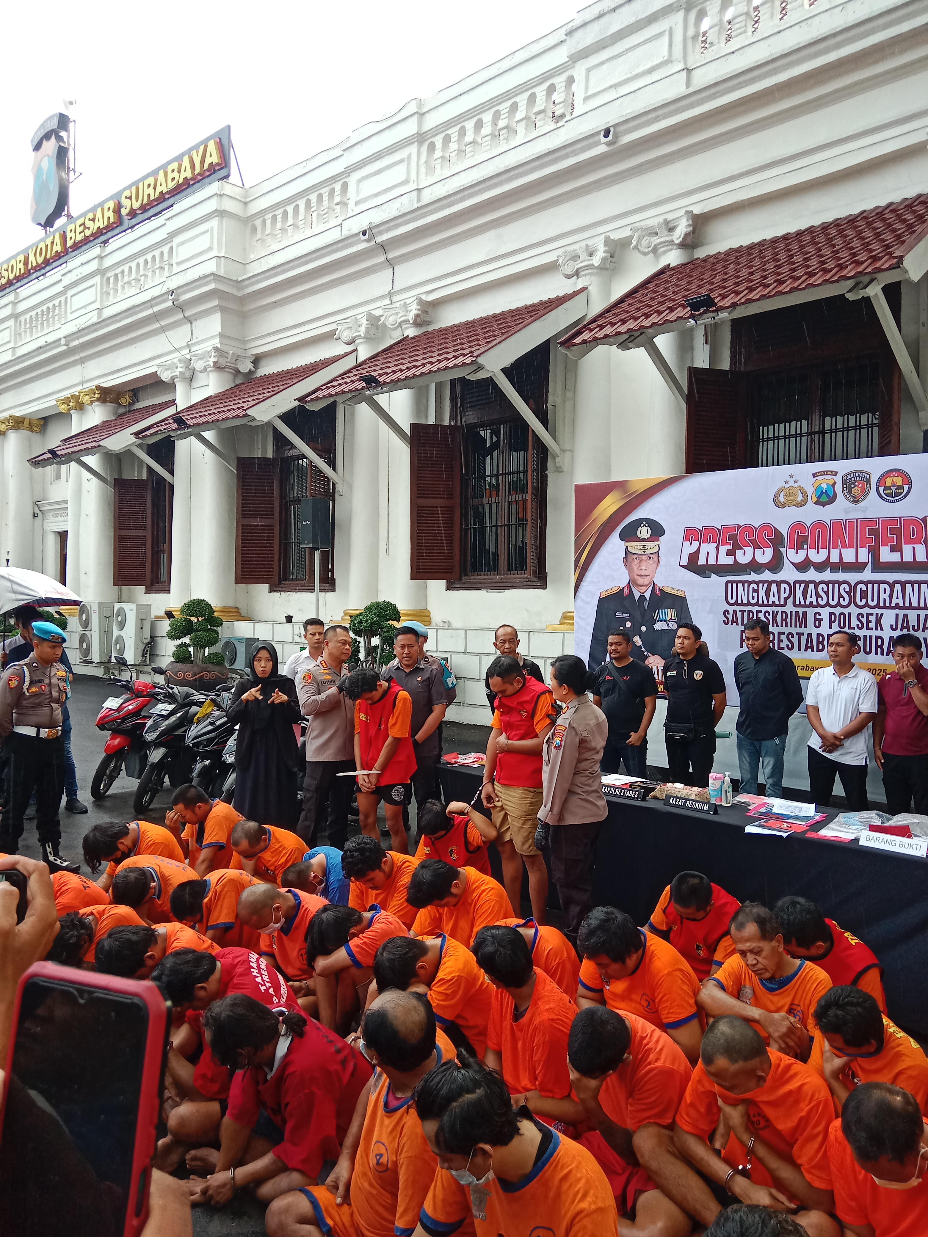 Dalam keterangannya, Kapolrestabes menyampaikan bahwa jajaran Polsek di wilayah Surabaya berhasil mengungkap 41 kasus curanmor dan menangkap 41 tersangka dalam kurun waktu 26 Februari hingga 20 April 2025. Dari jumlah tersebut, enam orang di antaranya merupakan penadah.