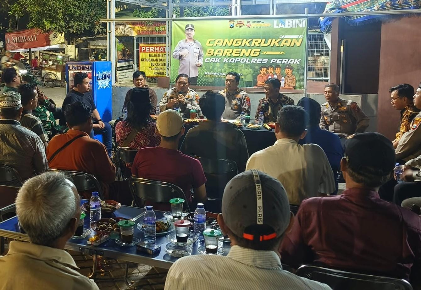Kapolres Pelabuhan Tanjung Perak AKBP Wahyu Hidayat dalam sambutannya menyampaikan bahwa kegiatan cangkrukan ini merupakan sarana membangun komunikasi dua arah antara polisi dengan warga.