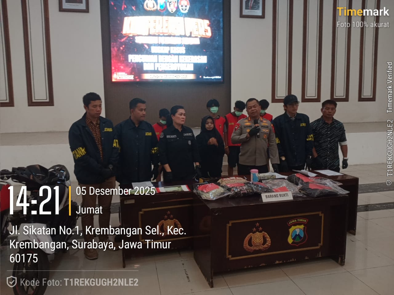 Surabaya, Potretrealita.com – Gerak Cepat Polrestabes Surabaya kembali menunjukkan dalam memberantas aksi kejahatan jalanan. Melalui konferensi pers di Gedung Bhara Daksa pada Jumat, 5 Desember 2025.