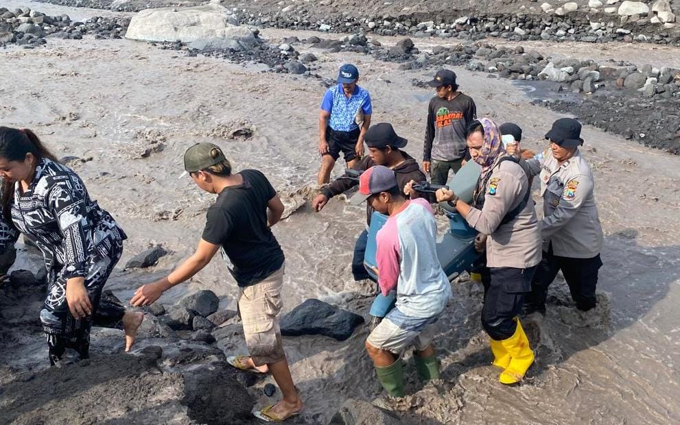 “Jadi upaya penyelamatan warga yang terdampak banjir lahar ini kami lakukan dengan menerjunkan sejumlah personel di jalur evakuasi,” terang Kombes Pol Abast.