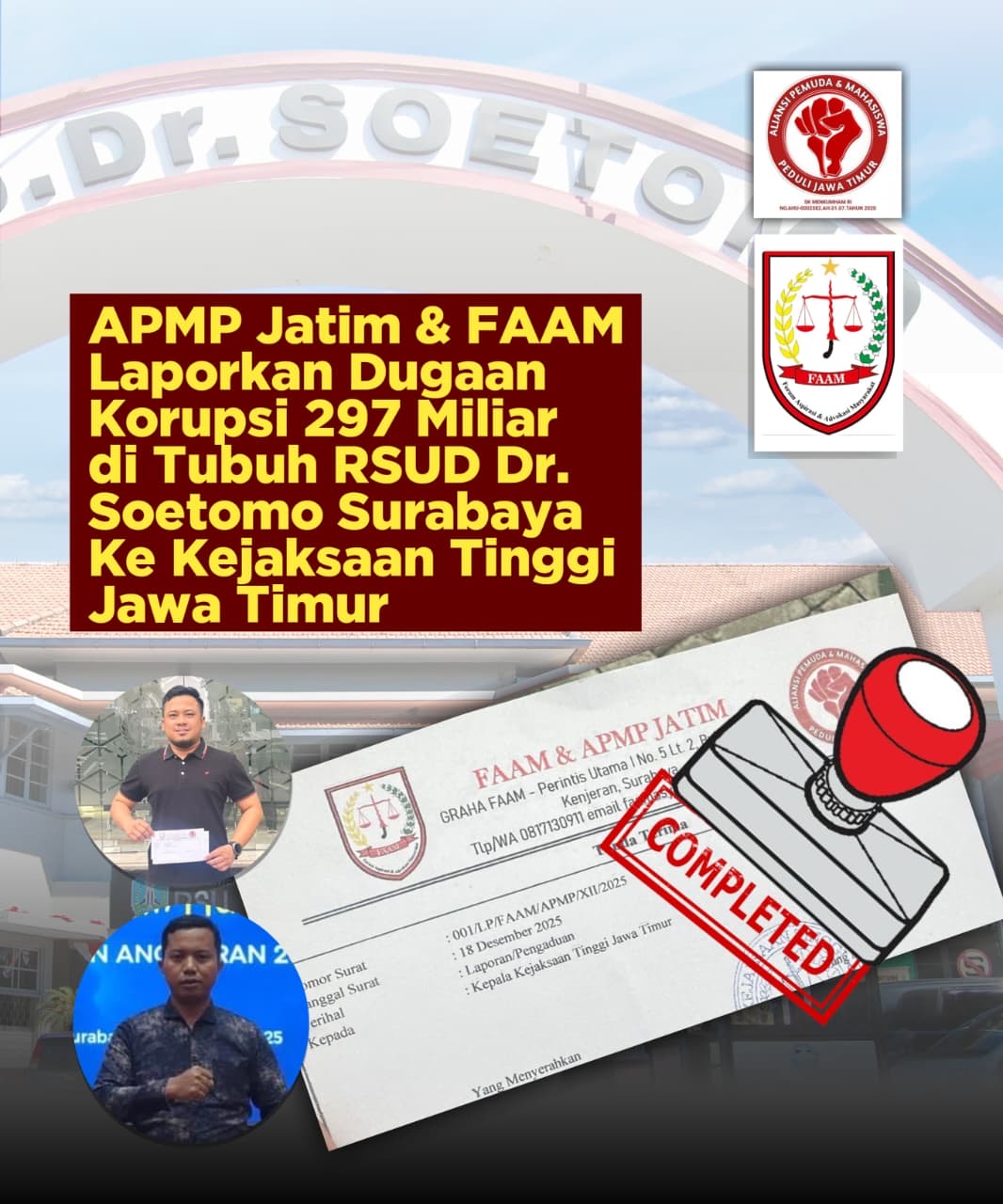 Sebelumnya Rumah Sakit Dr Soetomo Surabaya, milik Pemerintah Daerah (Pemda) telah dilaporkan ke Kejaksaan Tinggi Jawa Timur Oleh Aliansi Pemuda dan Mahasiswa Peduli Jawa Timur ( APMP) atas dugaan korupsi dengan nominal 297 miliar.