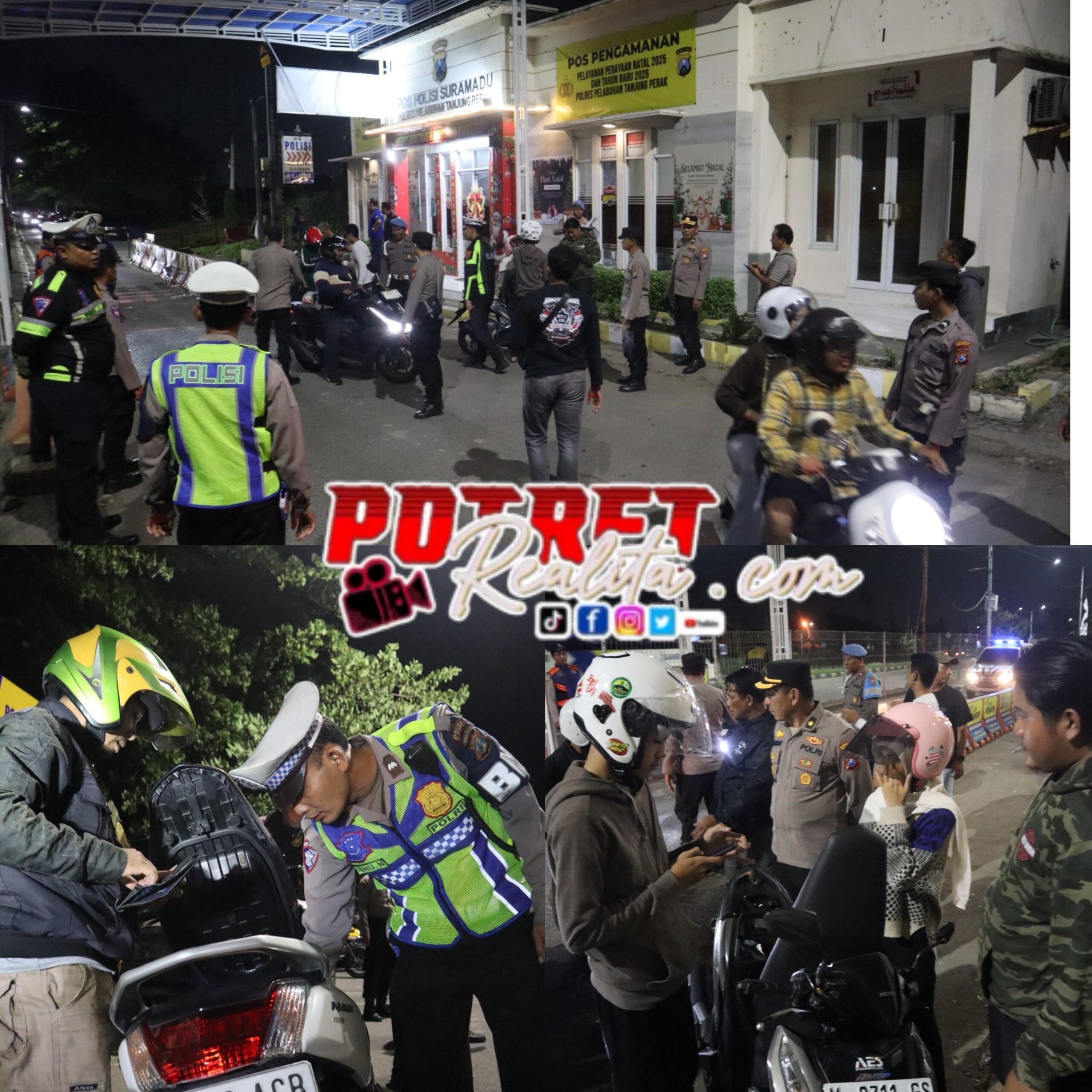 Tanjungperak, Potretrealita.com – Polres Pelabuhan Tanjung Perak komitmen menjaga situasi keamanan dan ketertiban masyarakat (Kamtibmas), khususnya di wilayah jalur keluar masuk Suramadu. Pada Jumat malam, 16 Januari 2026, pemeriksaan kendaraan bermotor di Pospol Suramadu, Kecamatan Kenjeran, Kota Surabaya.