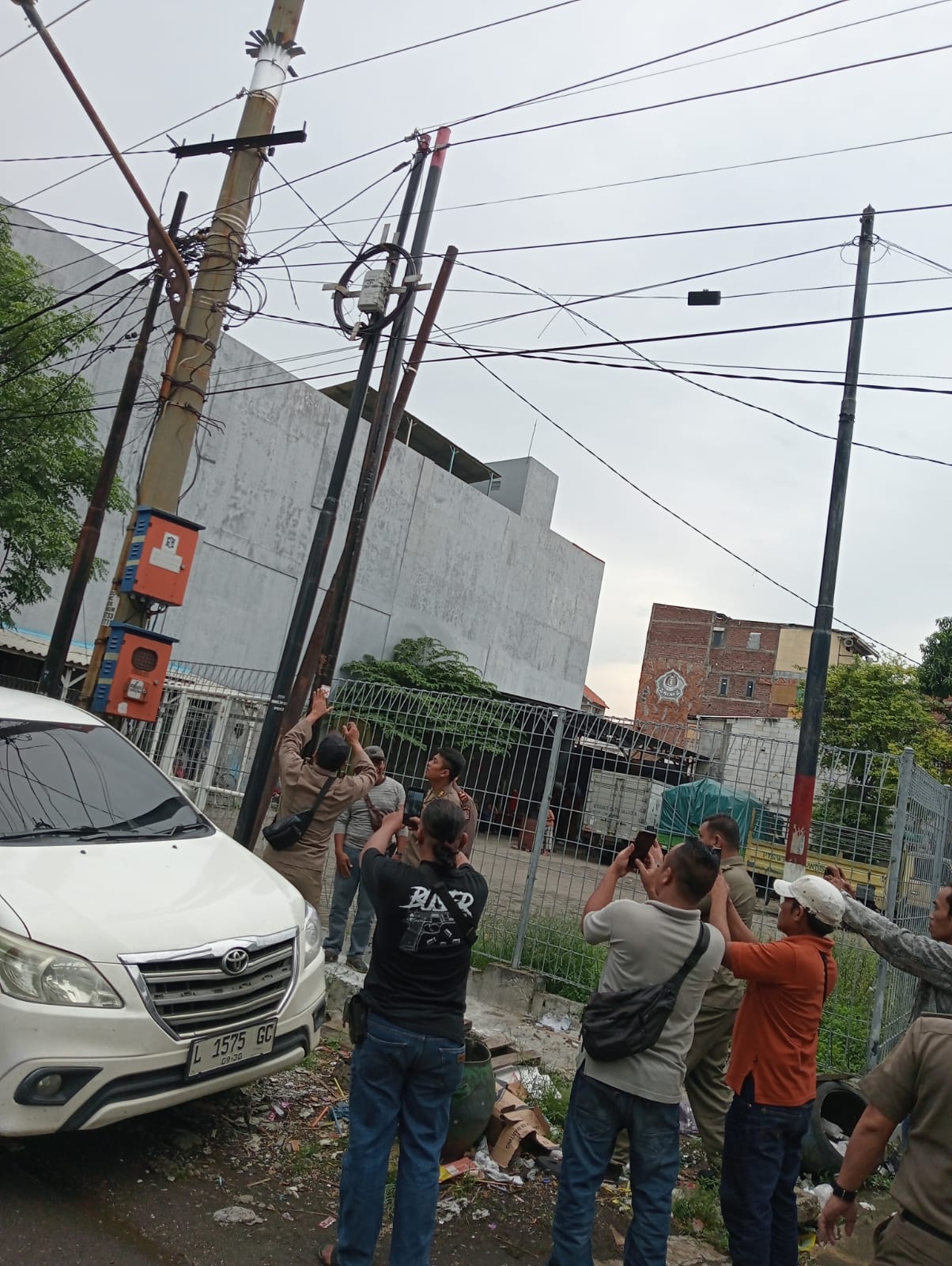 “Tiangnya tinggi, sekitar tujuh meter. Kalau roboh, dampaknya besar. Bisa menimpa rumah atau kendaraan. Tapi tidak ada yang bertanggung jawab,” ujar seorang warga.