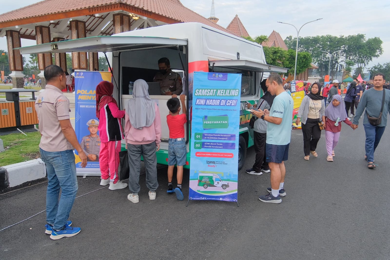 Sejumlah warga yang memanfaatkan layanan Samsat Keliling mengaku sangat terbantu dengan adanya pelayanan di lokasi CFD. Selain menghemat waktu, mereka merasa lebih nyaman karena pelayanan dilakukan di ruang terbuka dengan suasana santai dan ramah.