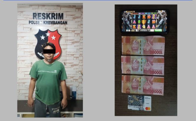 “Menindaklanjuti adanya informasi dari masyarakat tentang adanya tindak pidana Perjudian di Giras Kedinding tengah Surabaya. Disaat, Anggota Reskrim Polsek Krembangan mendatangi TKP dan berhasil menangkap tersangka Ab Bin C pada saat bermain judi online jenis slot Dragon dengan uang sebagai taruhan dengan menggunakan sarana 1 (satu) buah handphone merk Redmi warna hijau tosca,” ungkapnya.